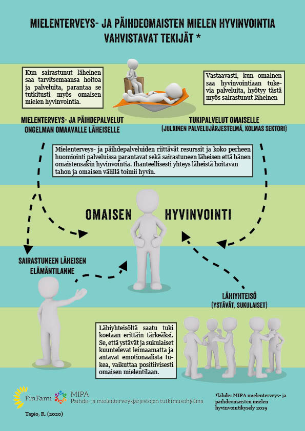 Mielenterveys- ja päihdejärjestöjen tutkimushanke MIPA 2.0 omaisten hyvinvointikyselyn perusteella, omaisen hyvinvointi on kytköksissä sairastuneen läheisen palvelunsaantiin. Kun läheinen saa tarvitsemaansa tukea ja palveluita, parantaa se omaisen mielen hyvinvointia. Vastaavasti, kun omainen saa tukea ja palveluita, on sillä positiivinen vaikutus sairastuneen läheisen hyvinvointiin. Myös lähiyhteisöltä saatu tuki on omaiselle tärkeää.